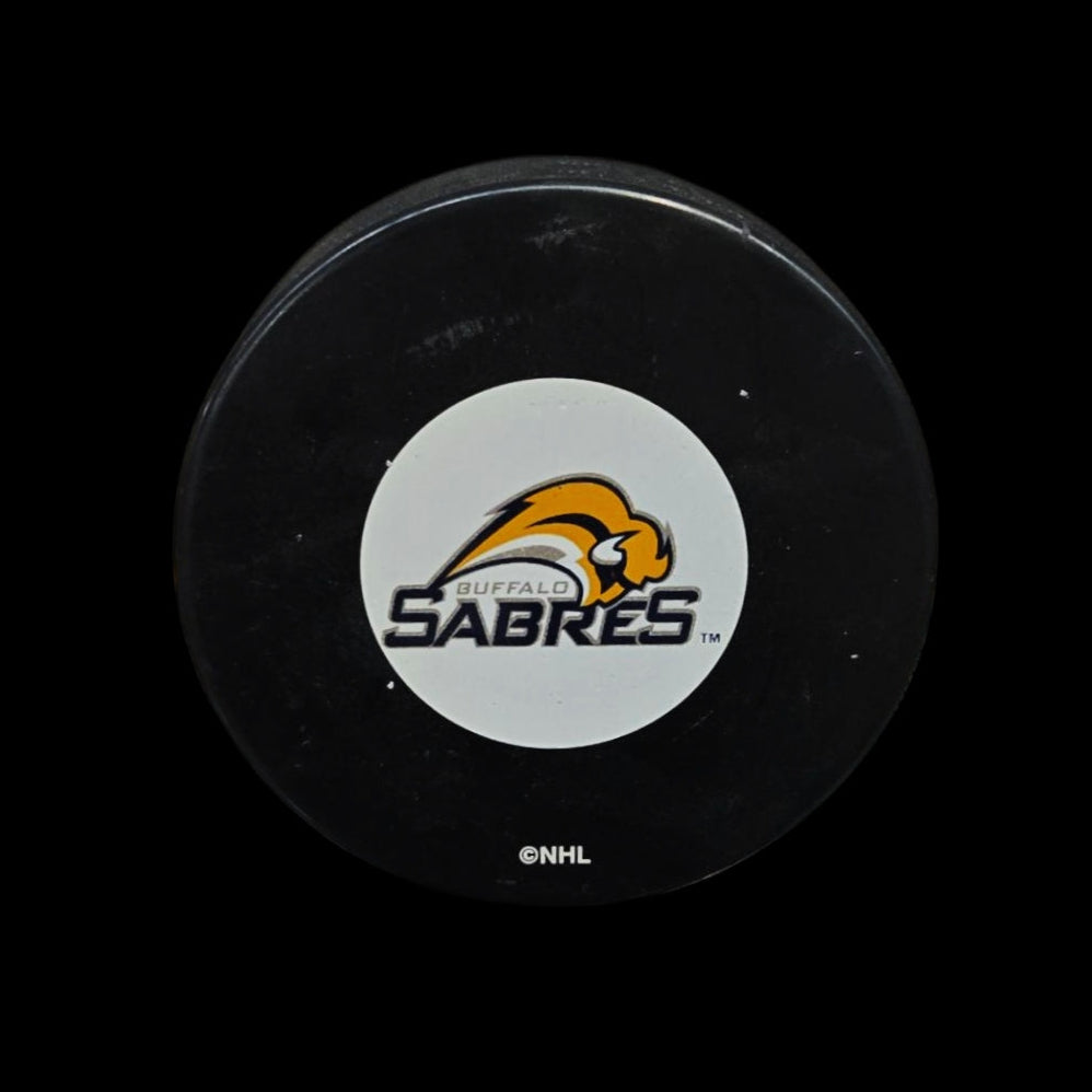 This official NHL hockey puck is designed specifically for autographs, with a clean white background that makes signatures pop. It features the Buffalo Sabres’ alternate logo used from 2006 to 2010, often referred to as the “slug logo.” A must-have for nostalgic fans and autograph hunters alike.