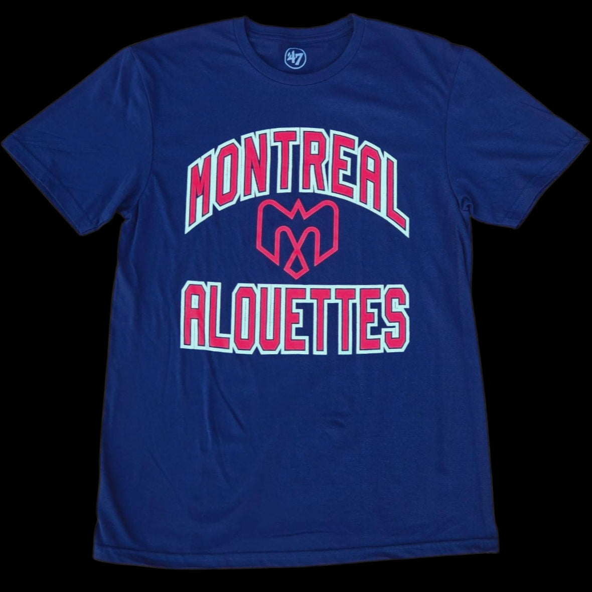 Show your team pride with this Montreal Alouettes tee from '47. Made from soft and comfortable cotton, this navy tee with red and white accents features a bold, clean graphic: the team name in large letters with the logo centered. A laid-back classic for fans who want to support the Alouettes in style.