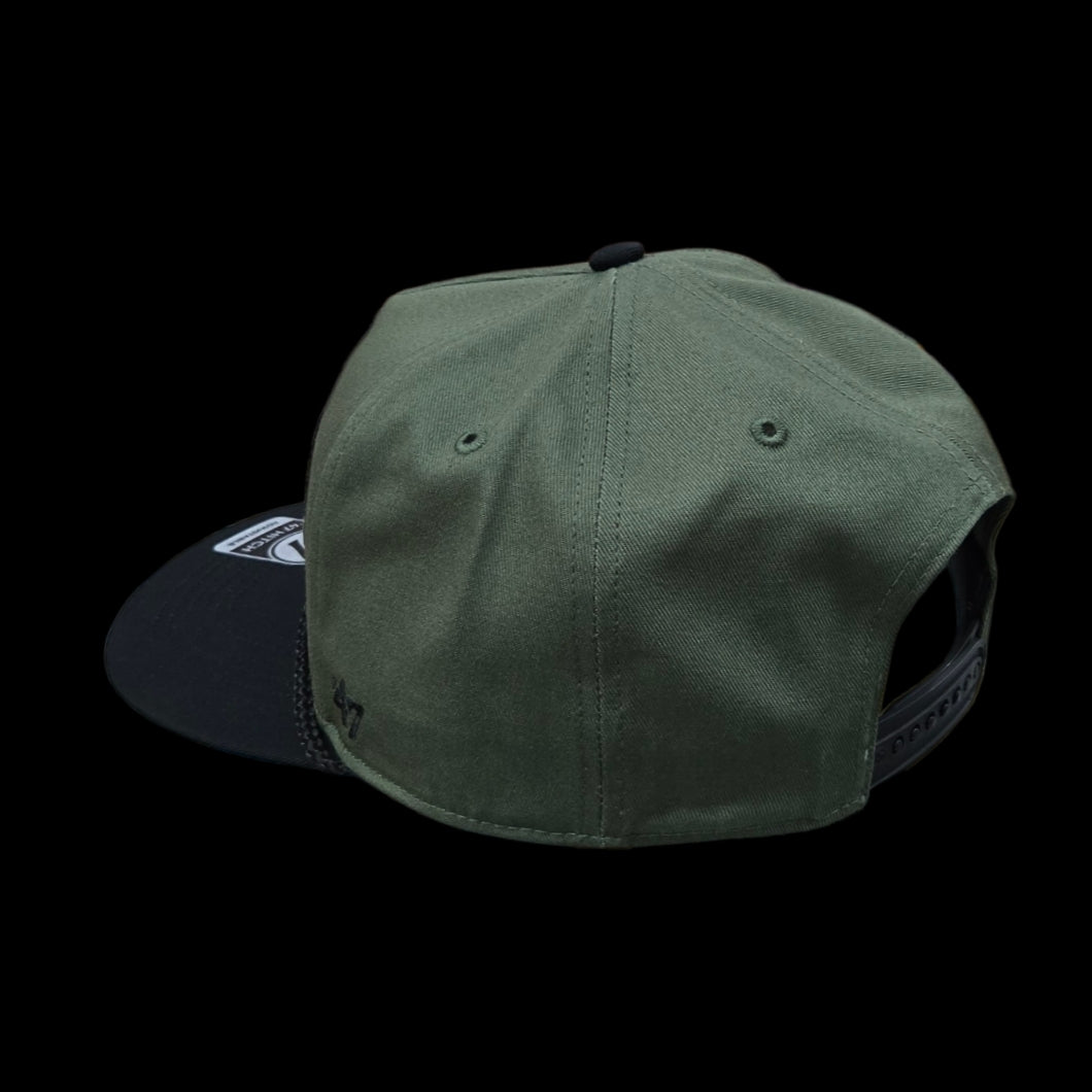The plastic snapback closure provides a comfortable fit and easy adjustment for most head sizes.