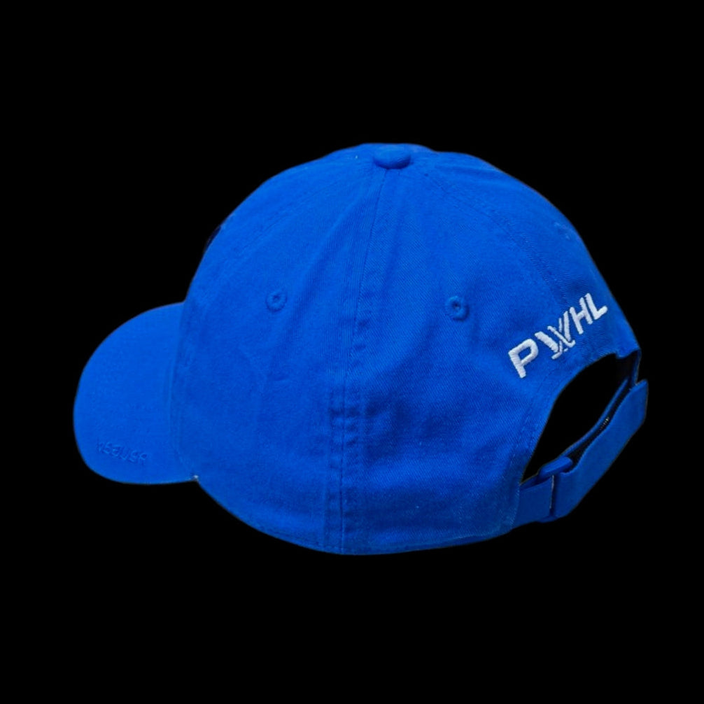 Featuring a curved brim, Velcro adjustable strap, and embroidered logo in Blue and Yellow, it delivers a clean look for everyday wear or game days.