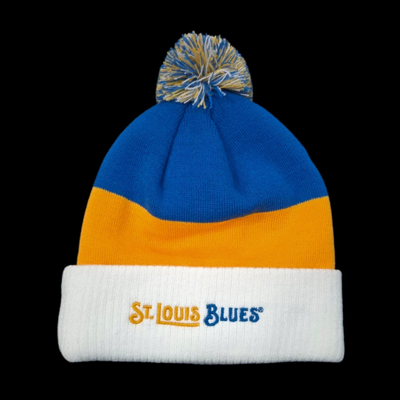 Affichez fièrement les couleurs des Blues de St. Louis avec cette tuque junior Outerstuff au style laine avec pompom.